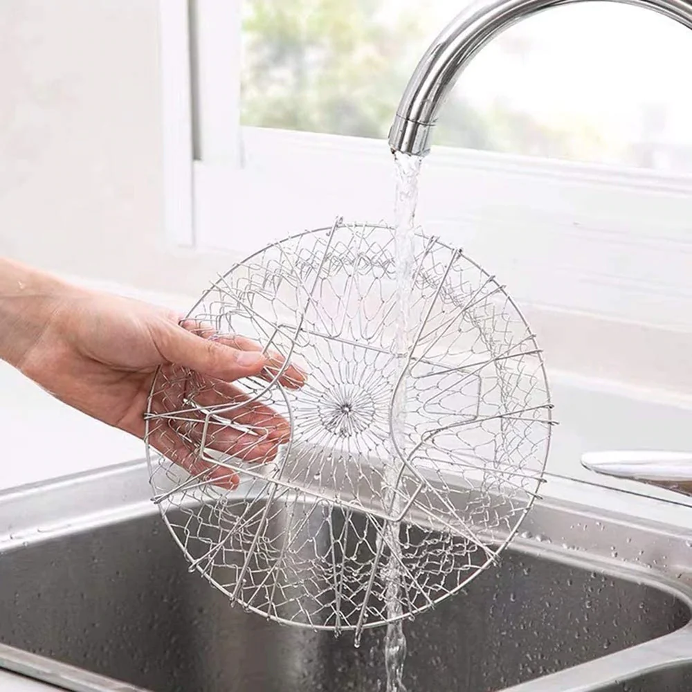Ayudante de cocina esencial, Flexible. Se puede guardar en forma plana para un fácil almacenamiento, se expande instantáneamente cuando lo levantas a una cesta flexible que te permite cocinar, lavar, hervir o freír alimentos con facilidad.